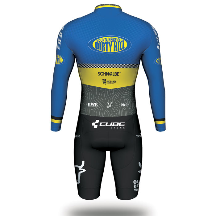 Crosspak als combinatie van all-season thermo vest en de korte broek. Gemaakt van elastische Dolomiti 270g/mq (83% PL – 17% EA) en Superroubaix 245g/mq (80% NY – 16% EA – 4% PL). Licht van gewicht en nauwsluitend om het lichaam. Houd er rekening mee dat dit crossuit iets kleiner valt. Neem bij twijfel een maatje groter. Rondom de bovenbenen is de bibshort voorzien van een 70 mm comfortabele (gerecyclede) elastische gripper band, wat zorgt voor een tijdloze look en optimale grip en comfort. Uitgevoerd met de Thor Gel 120 zeem van Elastic Interface.